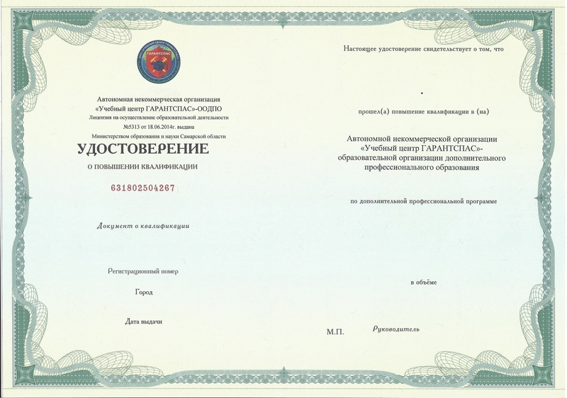 Удостоверение о повышении квалификации
